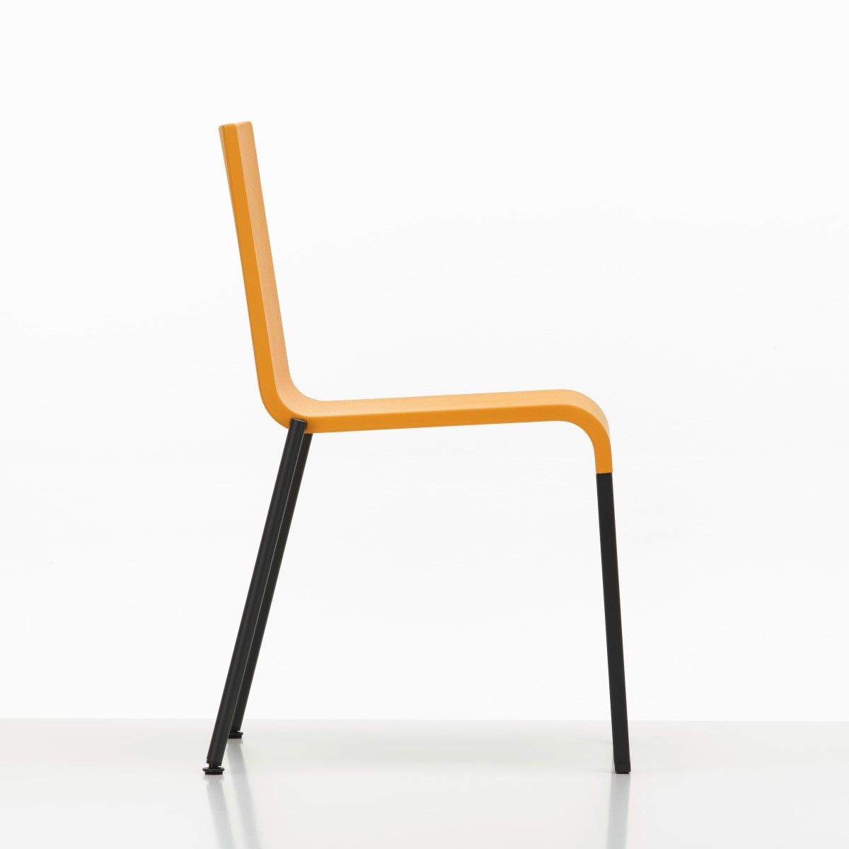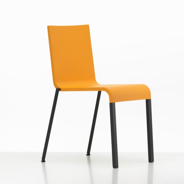 Der Stuhl .03 von Maarten Van Severen gilt als einer der zeitgemäßenen Stuhlentwürfe der letzten Dekade des 20. Jahrhunderts. Die klare und schlichte Form der Konstruktion, die einprägsame Silhouette ermöglichen einen außerordentlichen Komfort. Der Stuhl besticht optisch durch seine Gradlinigkeit frei nach dem Motto: "weniger ist mehr". Der Stuhl .03 ist unerwartet komfortabel. Die Sitzschale besteht aus flexiblem Polyurethan-Integralschaum und lässt gerade am Rücken ein Federn zu. Die Rückenlehne ist dazu mit Blattfedern versehen worden. Mit dem pulverbeschichteten oder verchromten Untergestell (Hinterbeine aus Stahlrohr, Vorderbeine aus Aluminiumprofil) ist er zudem im Außenbereich einsetzbar. Stapelbar oder nicht stapelbar. Auf dem Boden stapelbar bis zu 10 Stühlen, auf dem Stapelwagen bis maximal 20 Stühle. Mit Gleitern für Teppichboden oder Filzgleitern für harte Böden. Der Komfort und die hohe Stapelbarkeit sorgen gerne auch für den Einsatz in Meeting- und Terassenbereichen, Veranstaltungsräumen oder im Saal, sowie in Wartezonen. Die Abmessungen des Stuhls sind minimal, so dass auch innerhalb kleinerer Räume mehr Stühle eingesetzt werden können.