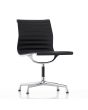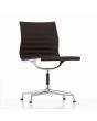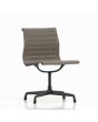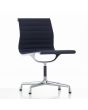 Die Aluminium Chair Group gehört zu den bedeutendsten Möbelentwürfen von Charles und Ray Eames. Der Eames Aluminium Chair EA 101 ist Teil der ikonischen Aluminium Group der bekannten Designer. Er ist heute der Inbegriff des klassischen Konferenzstuhls. Der Stuhl passt sich dem Körper an und bietet hohen Komfort. Der Vitra Aluminium Chair EA 101 ist nicht drehbar. Das Modell wird mit einem Untergestell mit 4-Sternfuss in Aluminium-Druckguss poliert, verchromt oder tiefschwarz pulverbeschichtet hergestellt. Der Stuhl hat mittelhohe Rückenlehne und tischorientierte Sitzposition. Traversen am Rücken und unter dem Sitz verbinden die beiden seitlichen Aluminiumrahmen und sorgen für die benötigte Spannung der Polsterung. Der Bezug ist aus hochwertigem Hopsak, Leder oder Leder Premium gefertigt. Optional ist der Rückseiten-Bezug in Leder für einen Aufpreis möglich. Der Chair EA 101 ist gut für den Einsatz am Ess- oder Schreibtisch geeignet. Ob im Büro oder Zuhause, strahlt der Stuhl überall Stilsicherheit und Professionalität aus.