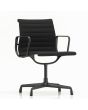 Die Aluminium Chair Group gehört zu den bedeutendsten Möbelentwürfen von Charles und Ray Eames. Der Eames Aluminium Chair EA 103 ist Teil der ikonischen Aluminium Group der bekannten Designer. Er ist heute der Inbegriff des klassischen Konferenzstuhls. Der Stuhl passt sich dem Körper an und bietet hohen Komfort. Der Vitra Aluminium Chair EA 103 ist nicht drehbar, aber wird mit Armlehnen gefertigt. Das Modell wird mit einem Untergestell mit 4-Sternfuss in Aluminium-Druckguss poliert, verchromt oder tiefschwarz pulverbeschichtet hergestellt. Der Stuhl hat mittelhohe Rückenlehne und tischorientierte Sitzposition. Traversen am Rücken und unter dem Sitz verbinden die beiden seitlichen Aluminiumrahmen und sorgen für die benötigte Spannung der Polsterung. Der Bezug ist aus hochwertigem Hopsak, Leder oder Leder Premium gefertigt. Optional ist der Rückseiten-Bezug in Leder für einen Aufpreis möglich. Der Chair EA 103 ist gut für den Einsatz am Ess- oder Schreibtisch geeignet. Ob im Büro oder Zuhause, strahlt der Stuhl überall Stilsicherheit und Professionalität aus.