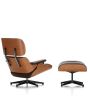Die Ausführung in Nussbaum natur betont den ikonischen Charakter des Eames Lounge Chairs durch eine warme, goldbraune Farbgebung und eine lebhafte Maserung, die jedes Stück einzigartig macht. Das formgepresste, lackierte Schichtholz aus europäischer Schwarznuss wirkt edel und zugleich wohnlich. Weiche, abnehmbare Polster aus recycelbarem V-Foam, bezogen mit feinem Leder oder Stoff, schaffen ein luxuriöses Sitzgefühl. Über flexible Shock Mounts sind die gepolsterten Armlehnen mit den Schalen verbunden und geben leicht nach – ein subtiler Komfort, der für den legendären Sitzkomfort des Modells sorgt. Der drehbare Fuß aus Aluminium-Druckguss und die optionale Auswahl an Gleitern für Teppich oder harte Böden vervollständigen das durchdachte Design. Mit einer Sitzhöhe von 38 cm fügt sich der Sessel perfekt in anspruchsvolle Wohn- oder Loungebereiche ein und verkörpert Handwerkskunst in ihrer schönsten Form.