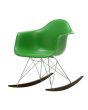 Der Eames Plastic Armchair wurde als erste industriell gefertigte Stuhl aus Kunststoff gefertigt und ist eine moderne Version des Fiberglass Chair. Das ist ein kompakter, aber ausdrucksstarker Lounge-Sessel. Der Armchair ist in Kombination aus Drahtuntergestell mit Verstrebungen, verchromt oder pulverbeschichtet bestellbar. Die organisch geformte durchgefärbte Sitzschale besteht aus Polypropylen mit speziellen Additiven, die das Ausbleichen der Farben durch UV-Bestrahlung verlangsamen. Diese Sessel bieten einen verbesserten Sitzkomfort. Die Farbpalette der Plastic Armchairs hat sich vergrössert, so kann man für jedes individuelle Interieur ein farblich abgestimmter Stuhl finden. Der Eames Plastic Armchair mit seinem Schaukelstuhluntergestell auf Holzkufen setzt Akzente nicht nur auf jedem Wohnraum, sondern auch auf Terrassen, Sitzplätzen, und auch unter freiem Himmel.