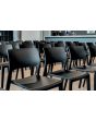 Der Juno Stuhl ist ein bekanntes Möbelstück von Arper, das von dem italienischen Designer James Irvine entworfen wurde. In einem Guss aus widerstandsfähigem Polypropylen gezogen, erfreut der Kunststoffstuhl Juno mit einhergehender Leichtigkeit und Stabilität. Er besteht aus einer geformten Sitzschale, die aus Kunststoff gefertigt ist und auf einem schlanken, vierbeinigen Gestell steht. Die Sitzschale bietet ergonomischen Komfort. Seine Rückenlehne hilft, eine korrekte Haltung zu bewahren, und gleichzeitig verleihen ihm seine vertikalen Linien ein exklusives Design. Die schlichte, einzigartige Form gibt es in zwei Lehnenformen sowie mit Armlehnen und ist auf Wunsch auch mit eleganter gepolsterter Sitzfläche und Rückenlehne lieferbar. Die Verfügbarkeit in verschiedenen Farben lässt sich diese Stühle leicht kombinieren und mischen, perfekt für die Küche oder das Wohnzimmer. Dank seines widerstandsfähigen Polypropylen-Materials ist der sowohl für den Innen- als auch für den Außenbereich geeignet, sowohl in Ihrem Garten oder auf der Terrasse oder vielleicht in Bars oder Cafés.
