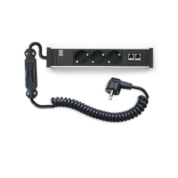 Narbutas Steckdosenleiste mit Spiralkabel (LAN Zugang und 3 Steckdosen)