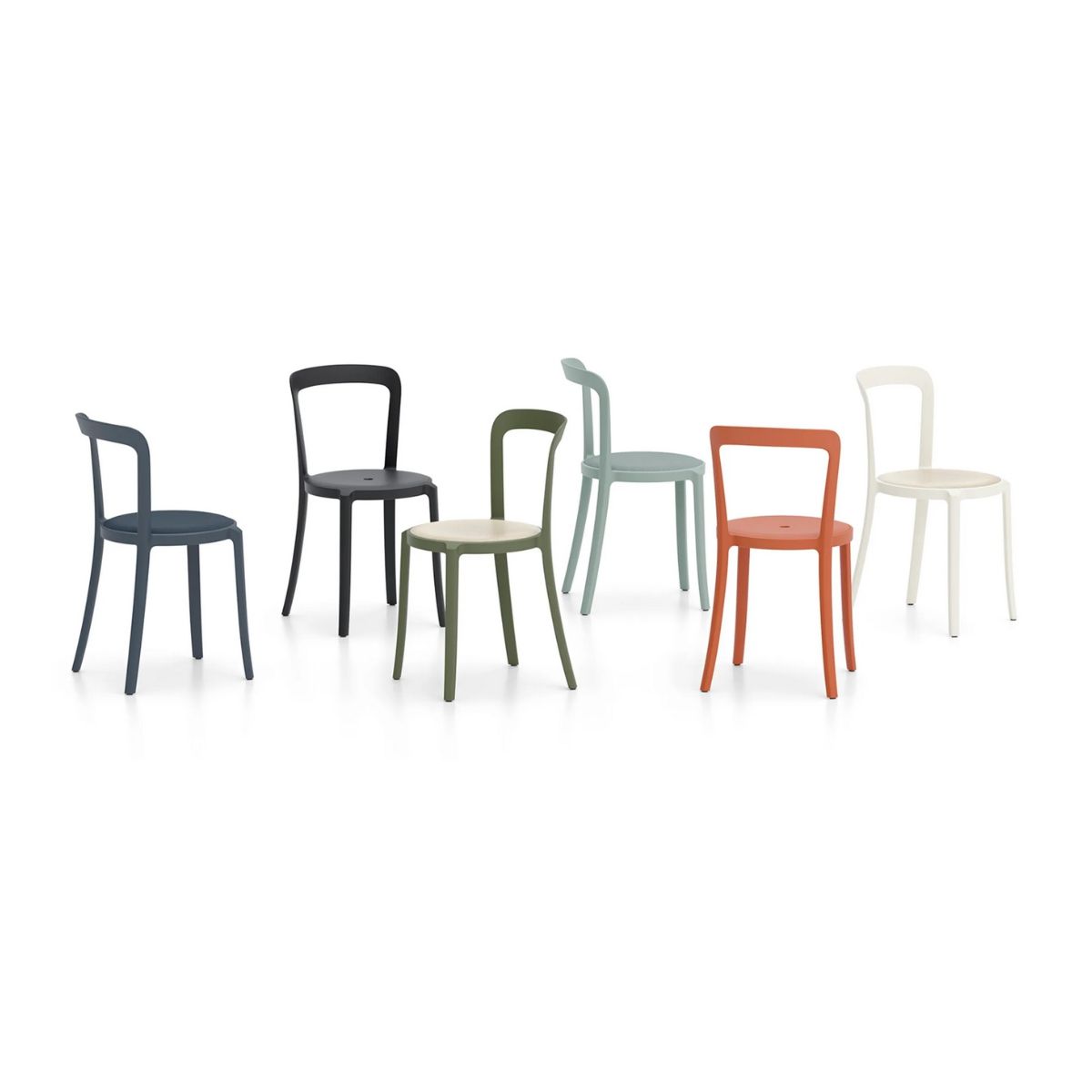 On&On Chair ist ein Stuhl von Edward Barber und Jay Osgerby für Emeco. Für die Herstellung wurde recyceltes Propylen verwendet, erhältlich in sechs attraktiven und zeitlosen Farben, die alle für den Außenbereich geeignet sind. Alle Farben sind für den Außenbereich geeignet. Der Stuhl ist mit oder ohne Sitzpolster bestellbar. Sperrholzsitze werden in Esche, Eiche und Nussbaum angeboten. Der gepolsterte Sitz wird in Steelcut Trio 3 Kvadrat-Stoff (90% gekämmte Schurwolle, 10% Nylon), Leder oder Kvadrat Haku-Polyurethan-Textil angeboten. Der Chair ist stapelbar bis zu 6 Stück. Um den Boden zu schonen, hat jedes Stuhlbein einen weichen transparenten Schutzgleiter aus TPU (Kunststoff). Der On&On Chair kann auch wieder recycelt werden. So ist die Philosophie von Emeco, das immer wiederverwendet, recycelt, neu erfindet und die Umwelt respektiert.