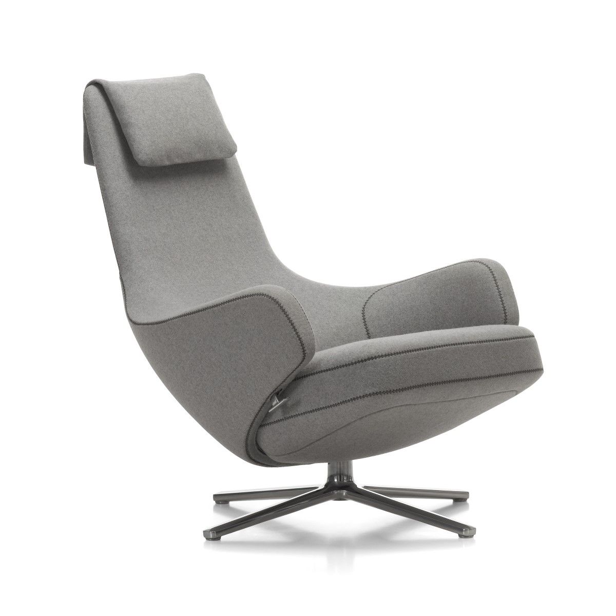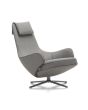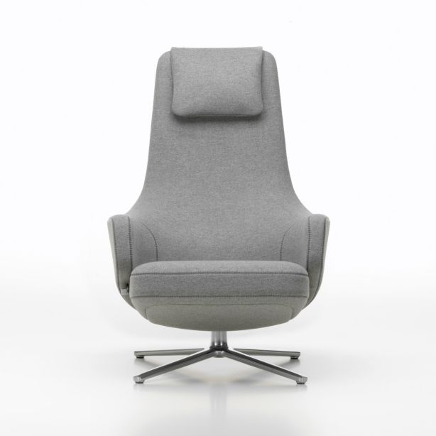 Der große und außerordentlich komfortable Sessel Repos von Antonio Cittterio kann ein aufregendes Design aufweisen und gleichzeitig unverkennbaren Sitzkomfort bieten. Die integrierte Synchronmechanik und der praktische Hebel, die haptisch hochwertigen Materialien, die zeitlose Silhouette und der perfekte Sitzkomfort machen Repos zu dem perfekten Sessel für eine entspannte Sitz- und Ruheposition. Ein hoher Sitzkomfort und eine optimale Stützung des Rückens werden durch die Gegenkraft der Mechanik erreicht. Sie lässt sich manuell an das Nutzergewicht anpassen. Repos ist in zwei Sitzhöhen, in Stoff oder Leder bezogen, in vielen unterschiedlichen Farben, erhältlich. Der Korpus dieses Sessels ist aus Polyurethan-Formschaum mit gegurtetem Kunststoffrahmen angefertigt. Füße sind aus Aluminium-Druckguss Viersternfuß, poliert oder pulverbeschichtet. Beiliegendes Nackenkissen wird mit Federn gefüllt. Der elegante, drehbare Lounge-Sessel mit seinem großzügig dimensionierten Polster, den einladenden Armlehnen und den hohen Rücken bringt in die Welt des Wohnens einen außergewöhnlichen Komfort. Dank seiner zurückhaltend eleganten Formgebung sieht er hervorragend in den unterschiedlichsten Lounges, Lobbys oder Rückzugsräume in modernen Büroräumen aus. Das gepolsterte Bänkchen Panchina macht das Wohlfühlerlebnis perfekt und bietet ein Plus an Komfort.