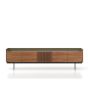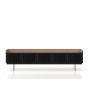 Das preisgekrönte Sideboard Stockholm Technic wurde von Mario Ruiz für einen spanischen Designmöbelhersteller Punt Mobles aus Valencia entworfen. Das ist die Verkörperung einer schlichten Eleganz und ebenso schöner wie praktischer Details. Es schafft eine Balance zwischen Emotionen und Funktionalität. Die Türen des Sideboards haben keine Griffe, stattdessen lassen sich die Fronten auf Druck automatisch öffnen und schließen. Hinter jeder Tür befindet sich jeweils ein höhenverstellbarer Einlegeboden. Die Standfüße sind auch höhenverstellbar, um Bodenunebenheiten auszugleichen. Es ist in verschiedenen Längen und Ausführungen erhältlich, zum Beispiel, mit Ablage aus Metall. Das Sideboard wird aus MDF und anodisiertem Aluminium gefertigt, Gestell aus schwarz lackiertem Eisen, wahlweise in Nussbaum oder schwarz gebeizter Eich. Auf Anfrage sind verschiedene Versionen und Farben erhältlich. Das Sideboard von Punt bietet vielfältige Wohnlösungen an und überrascht mit tollen Materialkombinationen in Holz und Metall. Das Sideboard Stockholm Technic bringt Luxus und edle Ästhetik in ein Büro oder ein beliebiges Gebäude, passt für alle modernen Räume.