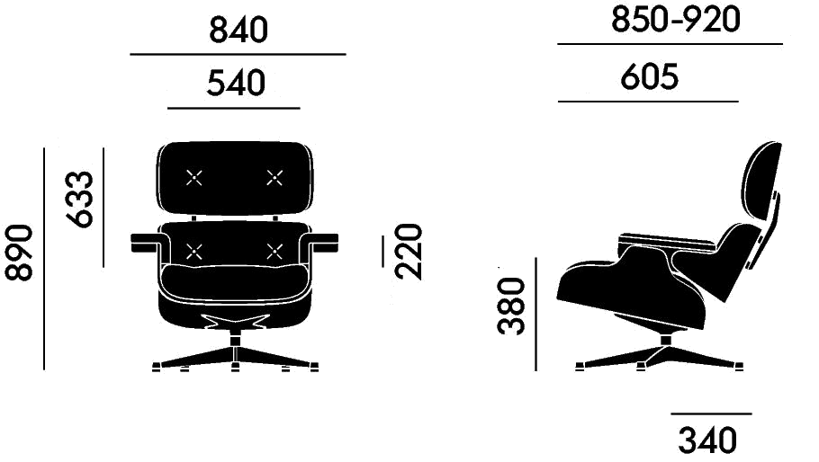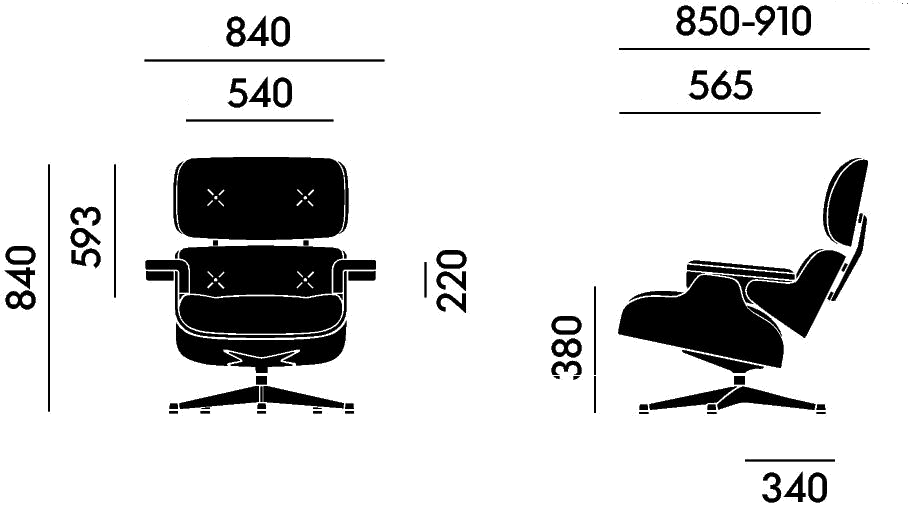 Klassische und neue Maße des Eames Lounge Chairs